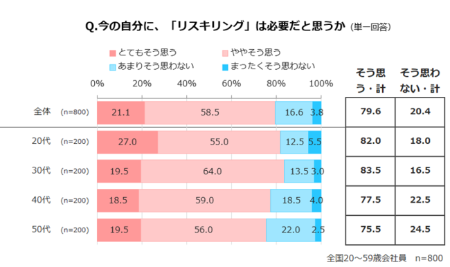 「リスキリングは必要だと思う」は8割で、仕事の幅が広がることや昇給を期待。