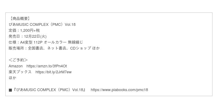 ■『ぴあMUSIC COMPLEX(PMC)Vol.18』 https://www.piabooks.com/pmc18