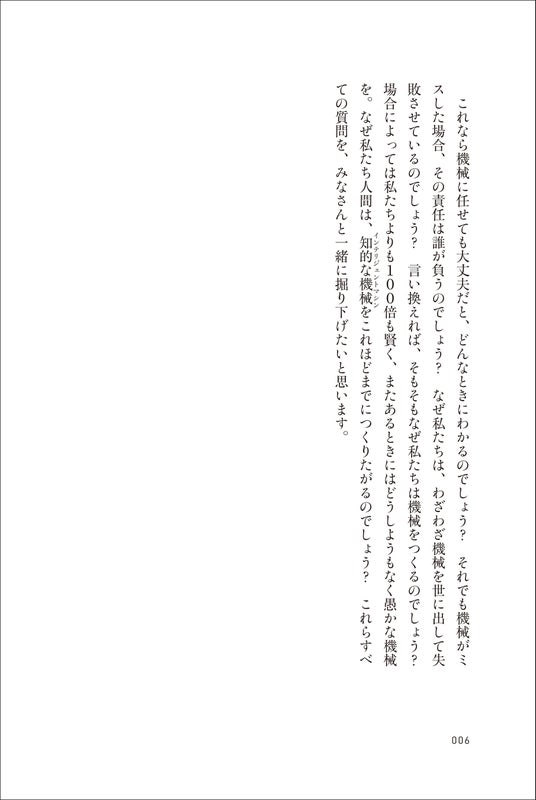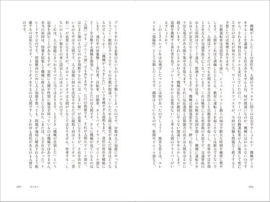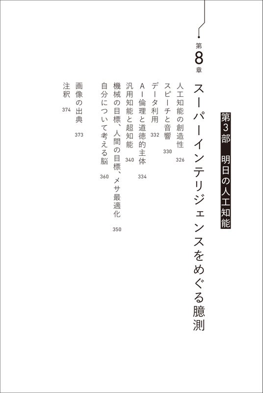 本文は3部構成となっており、まずは人工知能の歴史。次いで人工知能の最先端の現状と、人間が問題解決や意思決定まで機械に任せるとどうなるのかの倫理的、進化論的考察。最後に、創造性、意識、人工知能の未来の問題を論じます。どれも具体的な逸話が豊富で、かつコミカルな口調とテンポのよい解説は秀逸で、人工知能に詳しくない読者でも気軽に読むことができます。