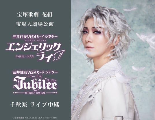 宝塚歌劇団 花組が2024年11月10日(日)宝塚大劇場(兵庫県)にて上演する、三井住友VISAカード シアター ファンタジー・ホラロマン『エンジェリックライ』、三井住友VISAカード シアター レヴュー グロリア『Jubilee(ジュビリー)』千秋楽の模様を全国各地の映画館にてライブ・ビューイングいたします。