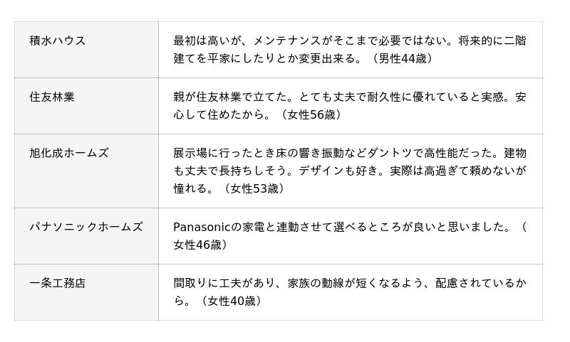 ◆品質・技術が優れている住宅メーカー
