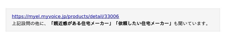 住宅メーカーのイメージや認知、自由回答にて家づくりを依頼したいメーカーの選択理由などについて聞いています。調査結果をお知らせいたします。