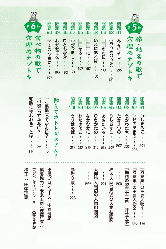 本書は、歌人でもある著者が、現代の人が「いいね!」と感じるトピックを選び出し、100個の穴埋めクイズにして紹介します。