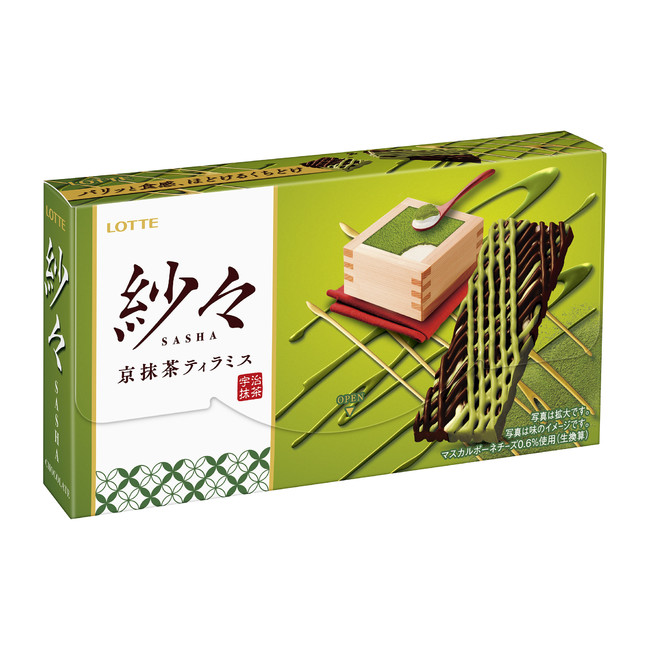 株式会社ロッテは4月26日(火)に、繊細な見た目とパリパリとした食感が特長のチョコレート「紗々」ブランドから『紗々<京抹茶ティラミス>』を新発売いたします。マスカルポーネ香る京抹茶ティラミスチョコとビターチョコ、ホワイトチョコの3種類のチョコレートを丁寧に織り重ねることで生まれる、まるで絹織物のような繊細な見た目と上質な味わいを楽しめます。この機会にぜひお楽しみください。