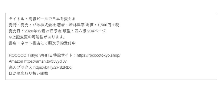 ぴあ株式会社より、Maison Rococo株式会社CEO若林洋平著『高級ビールで日本を変える 発売からわずか1年で100店以上の星付きレストランに愛されるビールを作った物語』を、12月21日に発売するこことが決定いたしました。