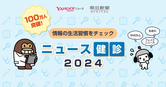 株式会社朝日新聞社(代表取締役社長:角田克、以下朝日新聞社)とLINEヤフー株式会社(代表取締役社長 CEO:出澤剛、以下LINEヤフー)が共同で10月15日(火)より提供開始した、クイズを楽しみながら情報を正しく判断する力を身につけるためのコンテンツ「ニュース健診2024」が、開始から約2週間で参加者数のべ100万人を突破しました。