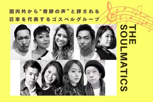 THE SOULMATICS(ザ・ソウルマティックス)現代ゴスペル300曲以上をレパートリーに持ち、国内外から“奇跡の声”と評される日本を代表するゴスペルグループ。ジャネット・ジャクソン来日公演への参加やミュージカル出演、メジャーアーティストとの共演等、プロの第一線の現場から、全国の小中高等学校・特別支援学校での年間60本を越える芸術鑑賞会、老人福祉施設への社会貢献活動まで、各方面で確かな実績を残している。また、ディレクター池末信の教育メソッドを用いて、 専門学校やボーカルスクール、プロダクションへ講師派遣、K-POPやJ-POPアーティストのレコーディングディレクション(歌唱指導)を行っている。