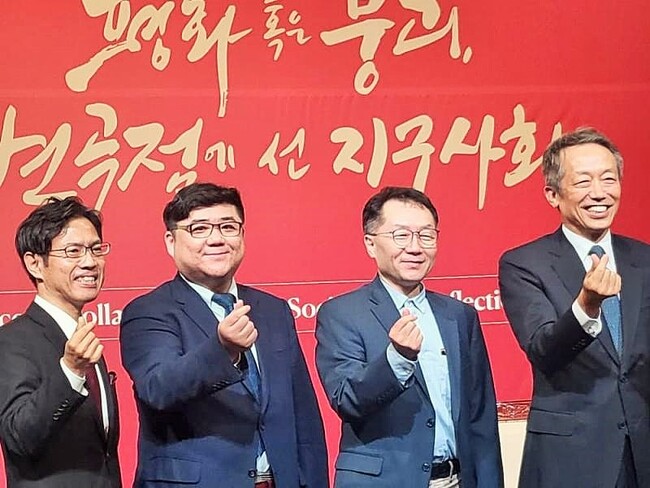 今年のテーマは「Peace and Collapse, Planetary Society at an Inflection Point」(平和か、崩壊か?地球と人類の共存にかかる分岐点にある地球社会)。円卓会議では、国連関係者をはじめとする日中韓の有識者代表が集まり議論されました。キョンヒ大学学長のKim Won-Soo氏(元国連軍縮担当上級代表代行兼国連事務総長特別補佐)が招待した横井副学長、国連NGO連合体議長Liberato C. Bautista氏、中国伝媒大学ナショナル・ソフトパワー・センター長のYao Yao氏、韓国海外開発協力NGO協議会事務総長のDaeshik Jo氏、国連持続可能な開発ソリューション・ネットワーク韓国共同議長のWoo-Kyun Lee氏、韓国国連システム学術評議会代表Dongju Choi氏がプレゼンターやパネリストとして参加。1.質的に持続可能な文明のパラダイムシフトを見据えたNGOの役割、2.コミュニティ参画型プラットフォームによるSDGsを実践するための連携モデル、そして3.SDGsの実践と平和の再定義について議論を展開しました。