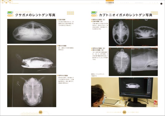 ・カメの健康診断【・健康診断の必要性・健康診断の目的・健康診断の基礎知識・健康診断の手順・カメの健康診断の一例(クサガメ)・ヨツユビリクガメの健康診断・カブトニオイガメの健康診断・ミシシッピアカミミガメの健康診断・画像診断(レントゲン検査)・クサガメのレントゲン写真・カブトニオイガメのレントゲン写真・カルテ】