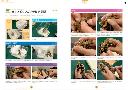 また、三輪獣医師が行うカメの健康診断の様子を公開してもらい、その内容を順を追って丁寧に解説してもらいました。