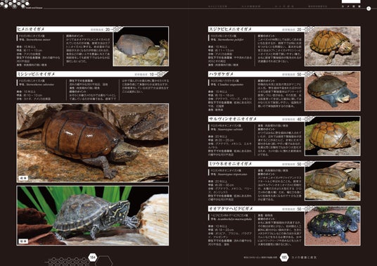 また、水棲、陸水棲、陸棲などタイプ別の飼育法など多くの写真やイラストを、用いてわかり易く解説します。