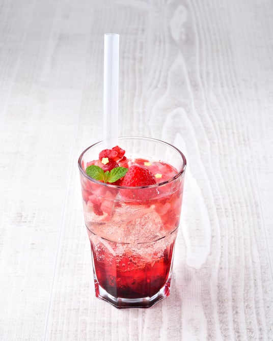 いちごソーダにチョコレートを潜ませた、カービィカフェのオリジナルドリンク。