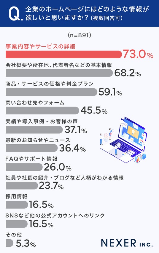■73%が、企業のホームページに欲しい情報は「事業内容やサービスの詳細」