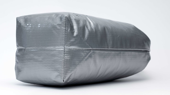 クールなシルバーの生地はぶ厚く水濡れに強いターポリンを採用!
