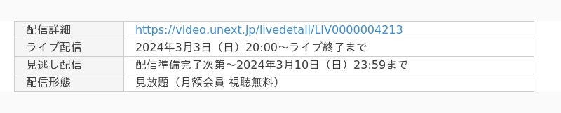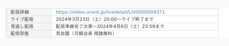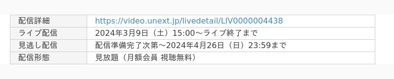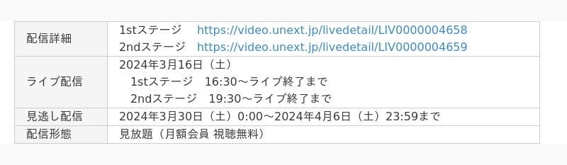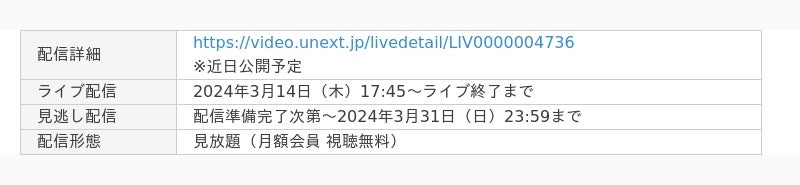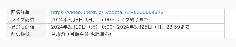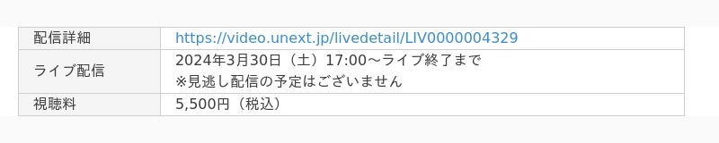以上の公演をU-NEXT独占でライブ配信いたします。この他にも、音楽ライブの配信を多数予定しています。詳しくはライブ配信一覧ページをご覧ください。