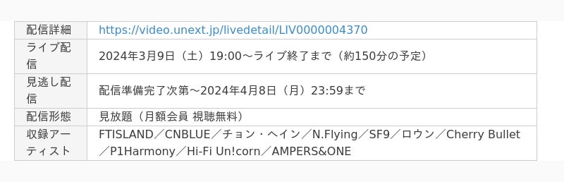 USEN-NEXT GROUPの株式会社U-NEXT(本社:東京都品川区、代表取締役社長:堤 天心)が運営する動画配信サービス「U-NEXT」が、2024年3月に独占配信する音楽ライブコンテンツのラインナップを発表いたします。