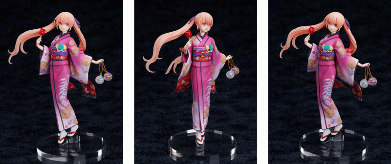 今回「F:NEX」では、ヒロイン・天野エリカを「F:NEX」オリジナル描き下ろしの“浴衣”姿でフィギュア化。キャラクターの特徴でもある美しい長い髪は、クリア素材を採用することで透明感を表現。浴衣はキャラクターのイメージに合わせ、ピンクベースの生地に華やかな柄を施し、重ね襟や帯留めなどの装飾にもこだわりました。りんご飴とヨーヨーを手に、舌を出して無邪気な笑顔を向ける圧倒的にかわいいエリカがお楽しみいただけます。