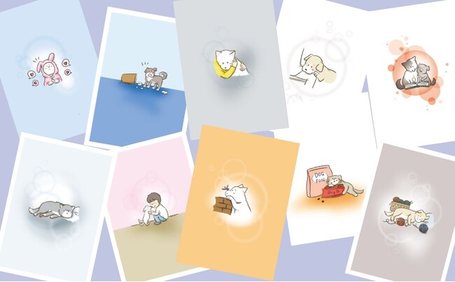 全点描き下ろし!「たまさんちのホゴイヌ」から生まれたポストカード24枚