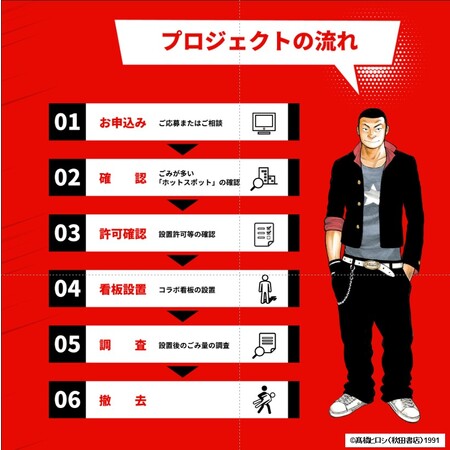 福島県会津坂下町出身の人気漫画家高橋ヒロシ先生の大人気作品 クローズ×WORST とコラボレーションした海洋ごみ削減に向けた取り組みを昨年より進めています。今回、その推進を加速させるべく、特設webページを開設。連携いただける福島県内の各市町村や民間企業、ボランティア団体、教育機関などからご応募いただき、街や道路でポイ捨てが多い地点にコラボ看板を設置して、ごみのポイ捨て抑止のメッセージを届けます。また、この取り組みは街の美化とごみ問題の解決だけでなく、地域の魅力向上にも寄与することが期待されています。