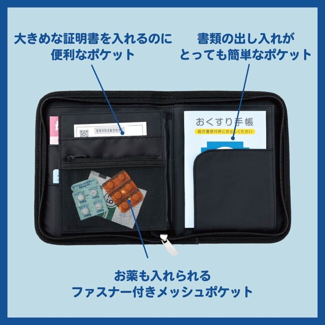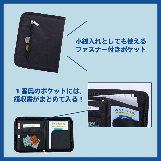 お薬、診察券、領収書、お薬手帳が全て入る!ポケット付きで便利♪