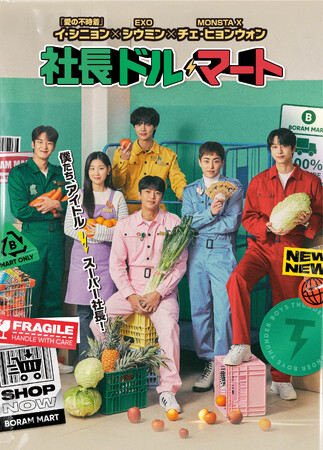 『社長ドル・マート』は、どん底に落ちた元アイドル、かつてのサンダーボーイズのメンバーたちがスーパーマーケット、”ポラムマート”を舞台に友情を育む成長物語。ある出来事をきっかけに解散することとなった5人組アイドルグループ・サンダーボーイズのメンバーが、解散から5年後、練習生時代から通っていたマートの社長に就任。マートの再生に乗り出す。キャストに、『愛の不時着』『魅惑の人』のイ・シニョン、『恋はチャレンジ!~どジョンに惚れる~』のシウミン(EXO)『また、FLY!』のチェ・ヒョンウォン(MONSTA X)、『ザ・ファビュラス』のチェ・ウォンミョン、「PRODUCE 101 シーズン2」『ひかり男子校生徒会』のイ・セオン、『夏時間』のチェ・ジョンウンという若手注目株が大集結しているのも見どころのひとつだ。