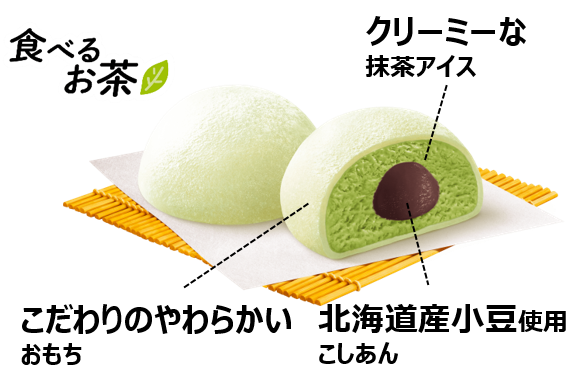 “食べるお茶”がコンセプトの風味豊かな味わいを再現するため、抹茶には京都府産宇治抹茶を使用し、こしあんには北海道産の小豆を使用しています。そんなこだわりの「雪見だいふく」をお楽しみください