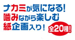 ナカミが気になる!噛みながら楽しむ、紙(かみ)企画を実施し(全20種)、レッテル(ガムの包み紙)でもお楽しみいただけます(次ページ参照)