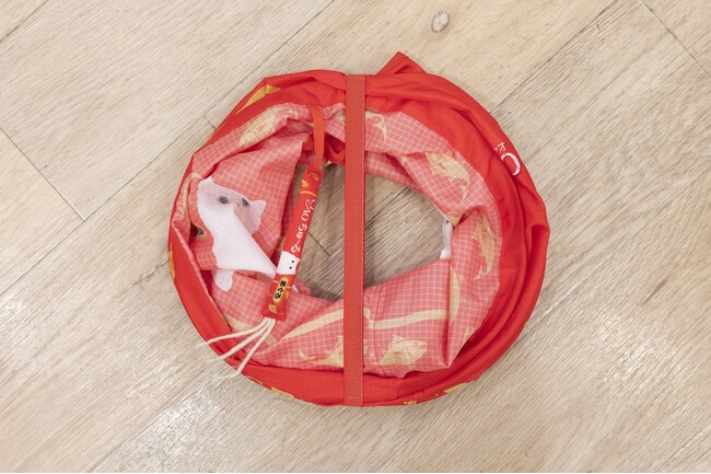 また、鈴が鳴るそっくりおもちゃもついているので、猫ちゃんが楽しく遊べること間違いなし! さらに、使わないときは小さくたためるので、飼い主さんにとっても嬉しいアイテムです。