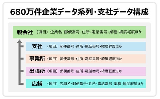 ナビットが販売する企業データ680万件に、系列・支社のデータ項目を追加し、整備が完了しました。