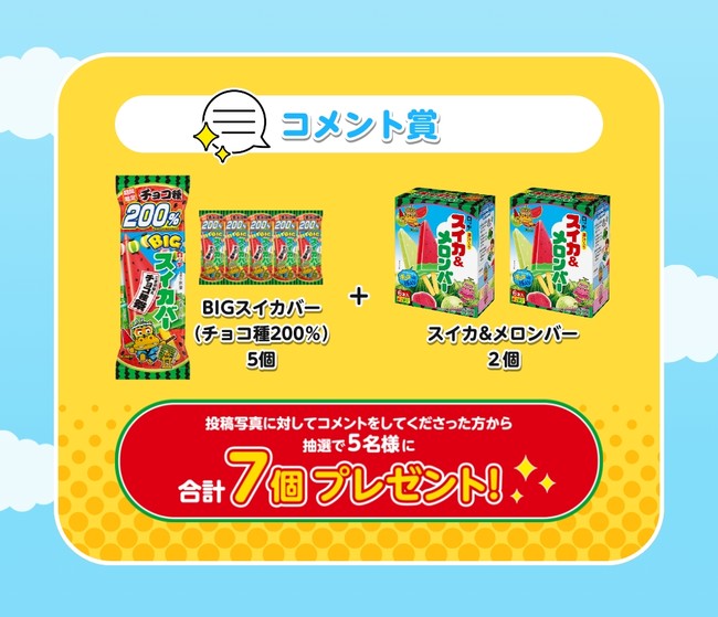 コメント賞: BIGスイカバー(チョコ種200%)5個 スイカ&メロンバー2個 5名