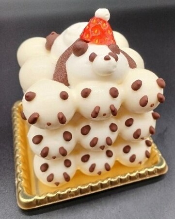 濃厚なクリームチーズムースの中に那須御用卵を使ったふわふわジェノワーズが入っているチーズケーキ。キューブ1つ1つをパンダに見立て、上にサンタクロースパンダをのせた今年限定のスイーツ。