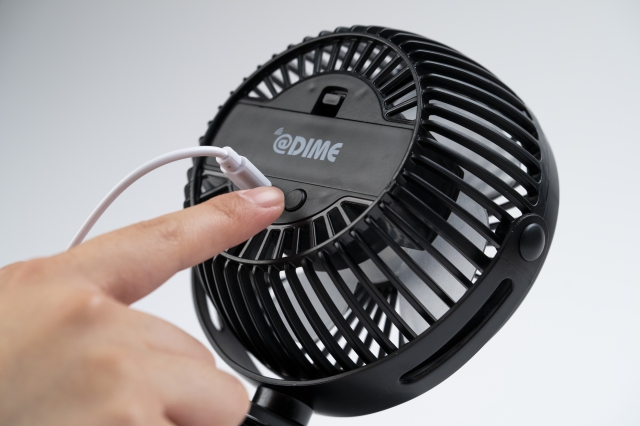 肝心の風力は最大風速5m/sとパワフル! 背面のスイッチで風速3段階の切り替えが可能。節電要請の今夏、ピンポイントで涼をとることができるマストアイテムだ。