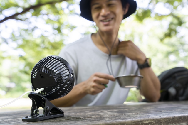 モバイルバッテリーにつなげば、リュックやカバンに固定して移動することもできるので、暑い日のハイキング、ウォーキング、通勤に携帯することも可能。