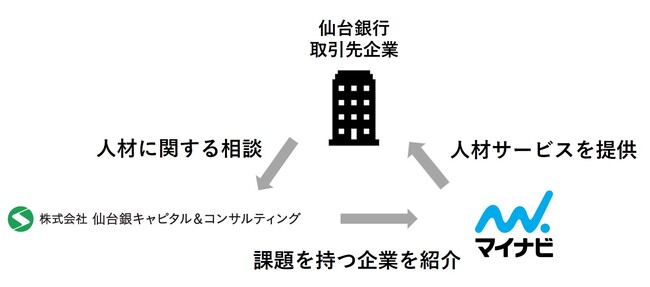 株式会社マイナビ(本社:東京都千代田区、代表取締役 社長執行役員:土屋芳明、以下マイナビ)と、株式会社仙台銀キャピタル&コンサルティング(本社:宮城県仙台市、代表取締役社長:坂爪敏雄、以下仙台銀キャピタル&コンサルティング)は、業務提携を開始しましたので、お知らせします。