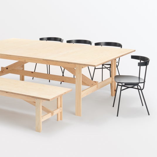 テーブルと同じ構造でできているため、セットで使えます。座面を違う種類や地域産材に変えられるよう、脚だけの販売も可能です。