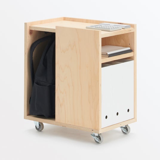 長辺と短辺にそれぞれ開口があり、無駄になりがちなワゴンの奥のスペースを有効に活用することができます。短辺の開口は無印良品のスタンドファイルボックスがぴったり収まります。長辺の開口にはフリーアドレスで困るカバンの収納としてもおすすめです。