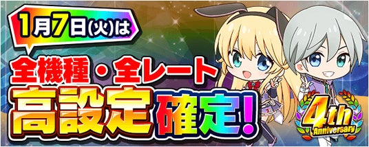 2025年1月1日(水)および2025年1月7日(火)※4周年記念日は、「777Real」内のぱちんこ・パチスロアプリが、高設定&入賞率アップとなります!大量出玉獲得のチャンス!