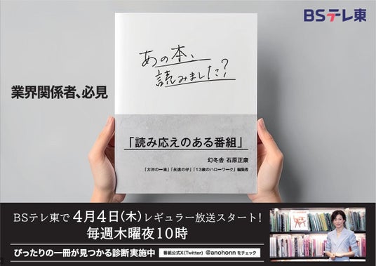 BSテレ東では2024年4月4日(木)夜10時~「あの本、読みました?」をレギュラー放送いたします。