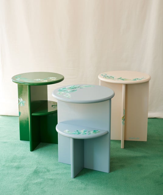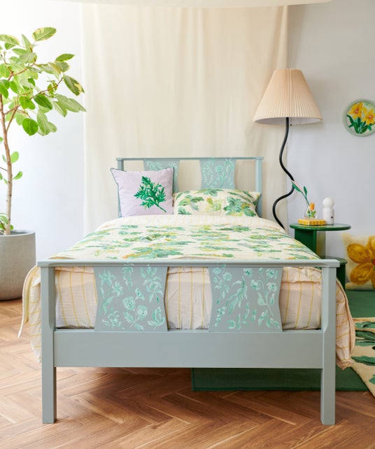 シンプルになりがちなベッドルームに彩りを与えてくれるスローケットやクッションカバーのファブリックアイテムを中心に、ハンドドローイングで鮮やかに花を描いた一点物の家具も新たに登場します。
