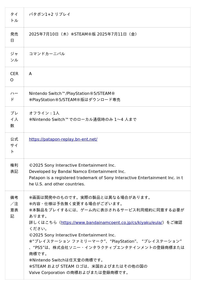 『パタポン1+2 リプレイ』公式サイトにて、配信&動画サポート素材の配布を開始いたしました!