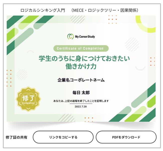 My CareerStudy編集部が提供する社会で活躍するためのスキルや知識を学ぶ基礎講座。オープン時は5カテゴリ約50講座が受講可能。講座の最後には確認テストが用意され、正答率100%の場合は修了書を発行。講座の受講履歴が簡単に確認できます。また、今秋以降には、企業の提供講座や社会人から直接学べるセミナーやワークショップ(ミートアップ)も提供予定。