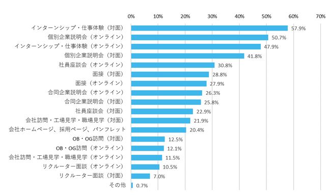 社風や社員の雰囲気を感じるために参考にするのは「対面のインターンシップ・仕事体験」。同時にオンラインの活動も上位に挙がる【図5、6】