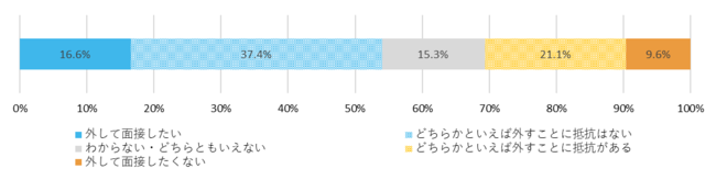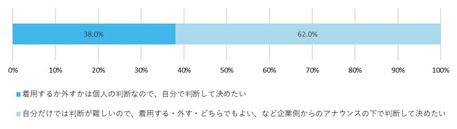 対面面接でのマスク着脱について学生の意見は、ばらつきが見られる結果に。6割以上の学生が企業からのアナウンス下で判断したいと回答