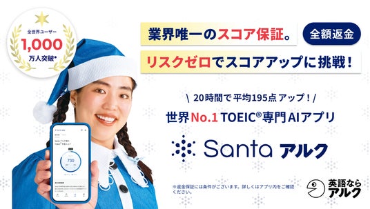 株式会社アルク(本社:東京都品川区、代表取締役社長:田中伸明)が提供し、Socra AI Inc.(本社:大韓民国ソウル特別市江南区、代表取締役:パク・スヨン、以下Socra)が開発を行っているTOEIC(R)対策アプリ「Santaアルク」(https://santa.alc.co.jp/)では、2026年1月30日よりスコアアップできなければ全額返金保証する「スコア保証プラン」を開始します。あわせて、短期間でスコアアップを目指す方が取り組みやすい「3ヶ月プラン」も導入します。
