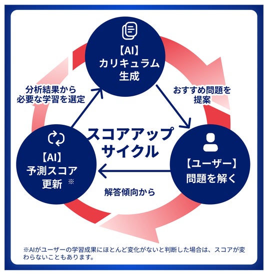 AIが提案した問題を解くだけで実力が身に付くスコアアップサイクル