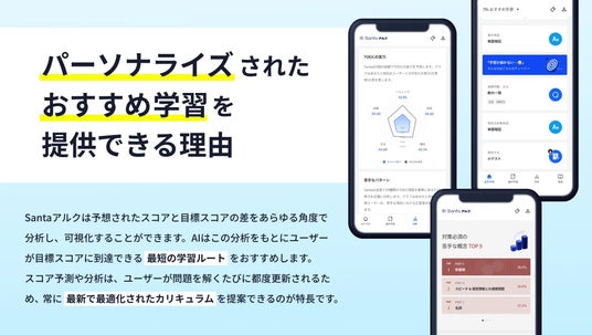 Santaアルクは、AIを駆使しスコアアップに特化した学習アプリとして、これからも本気でスコアアップを果たしたい学習者の皆さまが目標を達成できるサービスを展開してまいります。