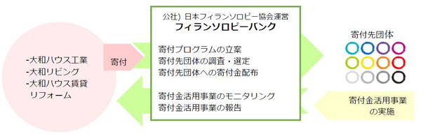 賃貸住宅事業と賃貸住宅管理・運営事業、賃貸住宅リフォーム事業の収益の一部(年間2,100万円を、公益社団法人 日本フィランソロピー協会が運営する「フィランソロピーバンク」を通じて年間20団体に寄付します。