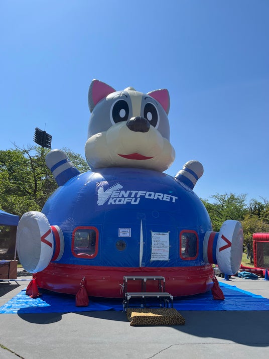 本イベントでは、ヴァンフォーレ甲府のイベントで毎回大好評の「キックターゲット」に加え、今年初登場となるエア遊具「ヴァンくんふわふわ」が登場します。また、ヴァンフォーレ甲府のグッズが当たる抽選会「ヴァンくじ」もご用意しています。また、ラグビーチーム・クリーンファイターズ山梨の選手へのタックル体験やリフトアップ体験、アームレスリング対決もお楽しみいただけます。さらにヴァンフォーレ甲府の公式マスコット「ヴァンくん」と「フォーレちゃん」もイベントを盛り上げます。