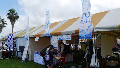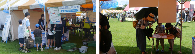 周南市誕生20周年を記念して開かれた「周南みなとまつり ミナトのミーツ」。水遊びエリアや、ウニやヒトデなどの海の生き物に触れられる移動水族館などが設けられた会場の一角に、昨年に続き「海と日本プロジェクト×ミナトのミーツ」ブースが登場しました。