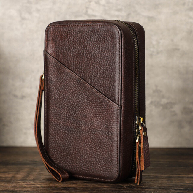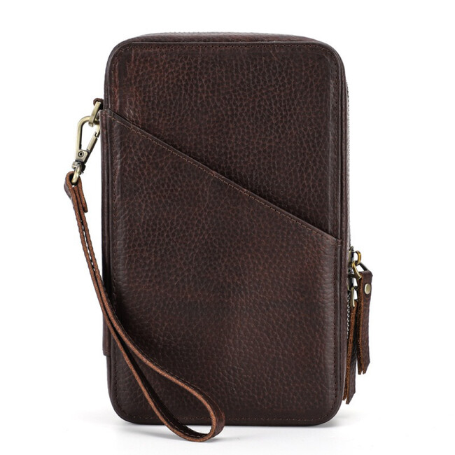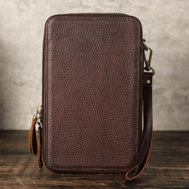 【触り心地の良いレザー素材/ストラップ付き/軽量コンパクト】